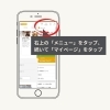 右上の「メニュー」をタップ後、「マイページ」をタップすると、マイページ画面が表示されます。