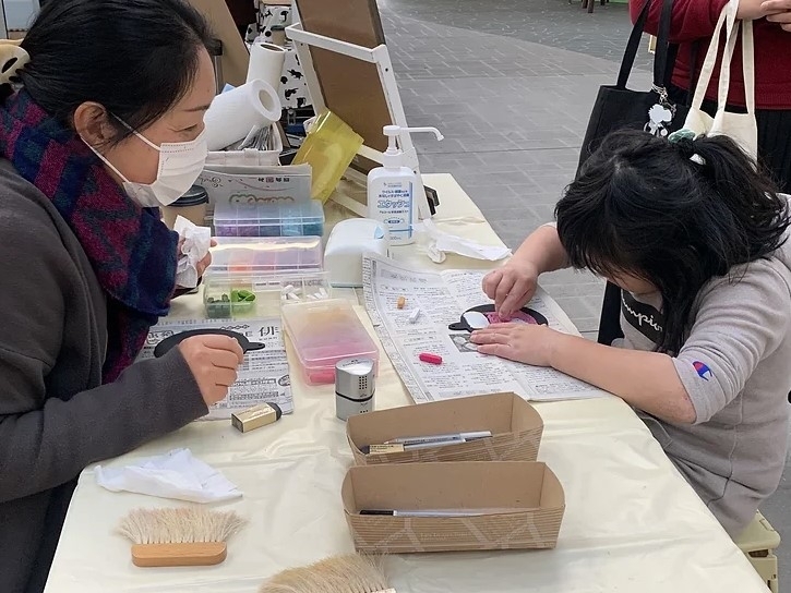 こちらはチョークアートのワークショップ(800円)のブース。ちょうどクリスマス前、自分で作ったオブジェを飾るのも素敵!