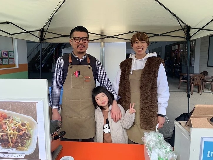オーナーの磯野さんご一家。娘の紗良ちゃんが通う那珂川町のこども園のみなさんに声をかけて、おさがりマルシェを開催されているのだそう。