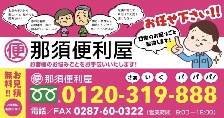 那須町・那須塩原市・大田原市・矢板市・塩谷町・さくら市・那珂川町・白河市・西郷村エリアを中心に承ります。